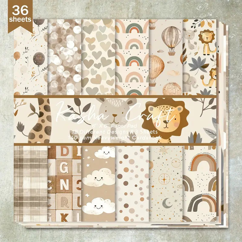36 lehte 15,24 cm (Loomade ja vikerkaare kujundusega pruuni taustaga) kraafikapaberit, sobib päevikute kaunistamiseks, õnnitluskaartide tegemiseks, fotoalbumiks ja käsitöödeks