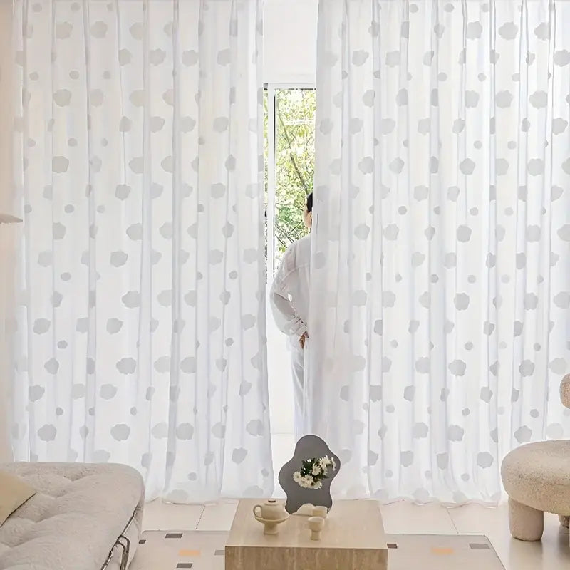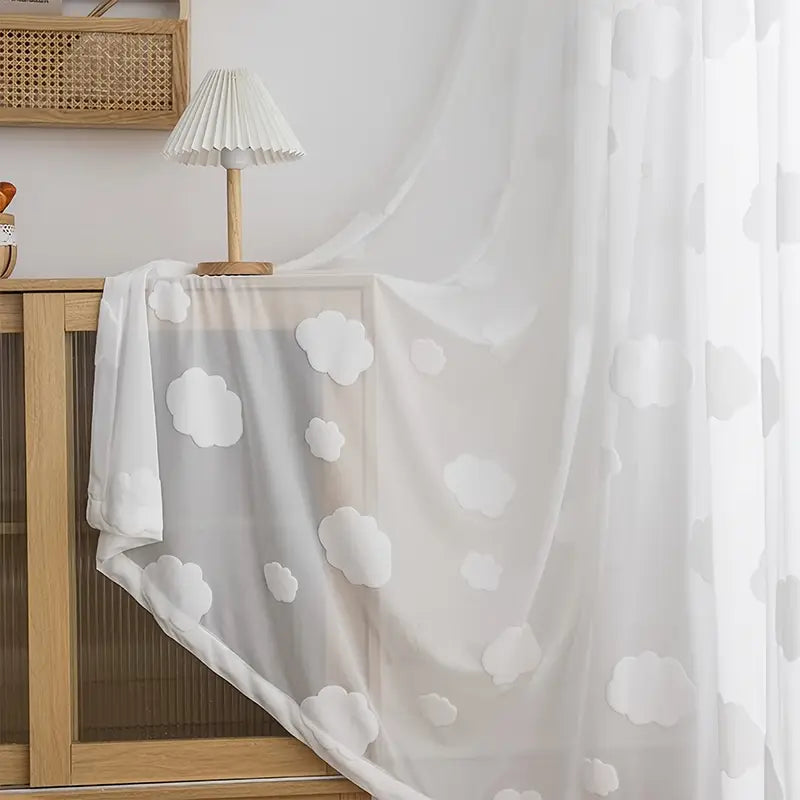 2 tk Pilvevalge Lõngakardin Laste Tuppa, Lihtne ja Moodne Valgust Läbipaistev Kolmemõõtmeline Pilvekujundus, Poolläbipaistev Akenkardin, Sobib Laste Magamistuppa, Elutuppa või Eraldamiseks, Dekoratiivne Kardin 132x275 cm