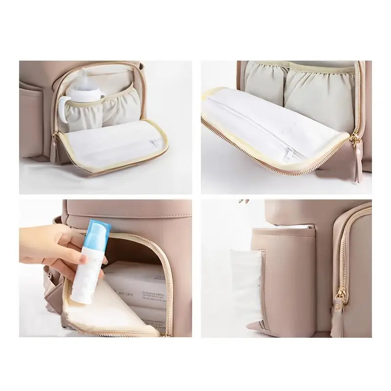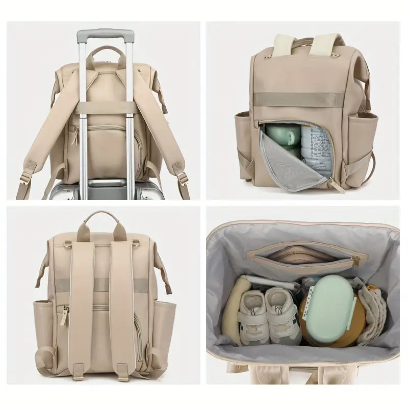Hoidke kõik beebitarvikud korras ja käepärast stiilses beežis seljakotis! See mähkmekott on piisavalt mahukas, et mahutada mähkmed, pudelid, riided ja mänguasjad, samas kompaktne ja kerge, et mugavalt igapäevaselt või reisidel kaasas kanda. Mitmed spetsiaalsed taskud ja sektsioonid aitavad hoida märjad ja kuivad asjad eraldi, tagades täieliku korrastatuse.