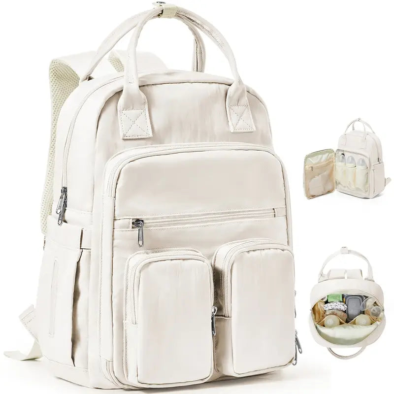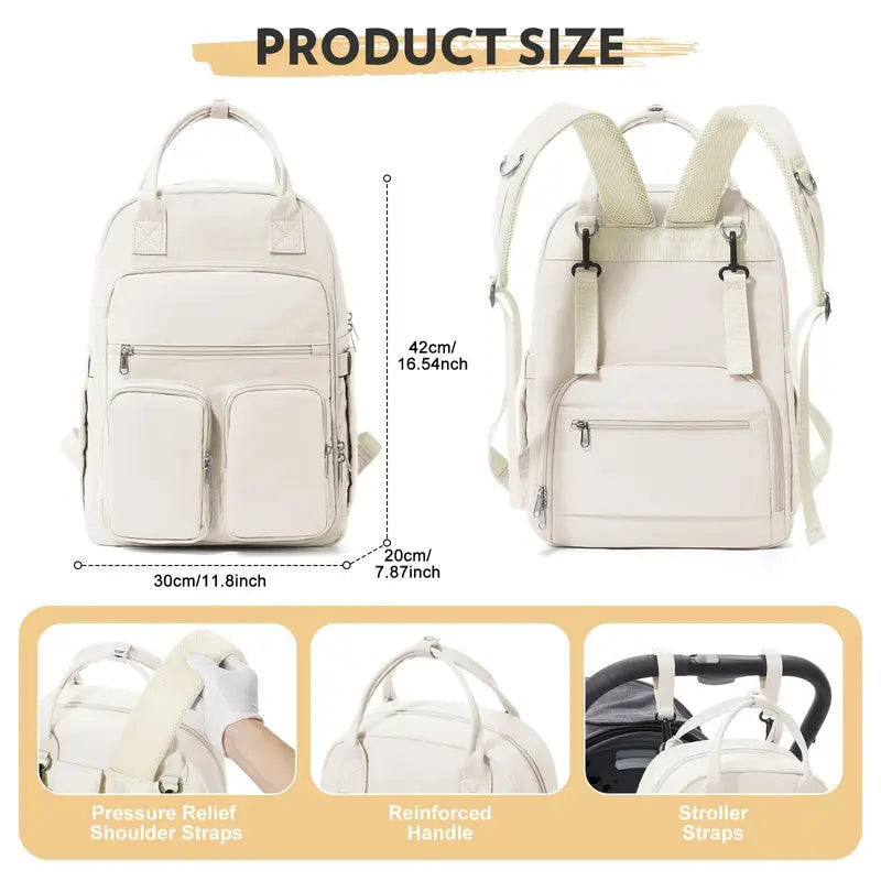 Reguleeritavad õlarihmad ja pehme seljatugi teevad kandmise mugavaks, samas kui minimalistlik ja neutraalne disain sobib nii emadele kui isadele. Vetthülgav nailonmaterjal on lihtne puhastada ja hoiab koti sisu kaitstuna.